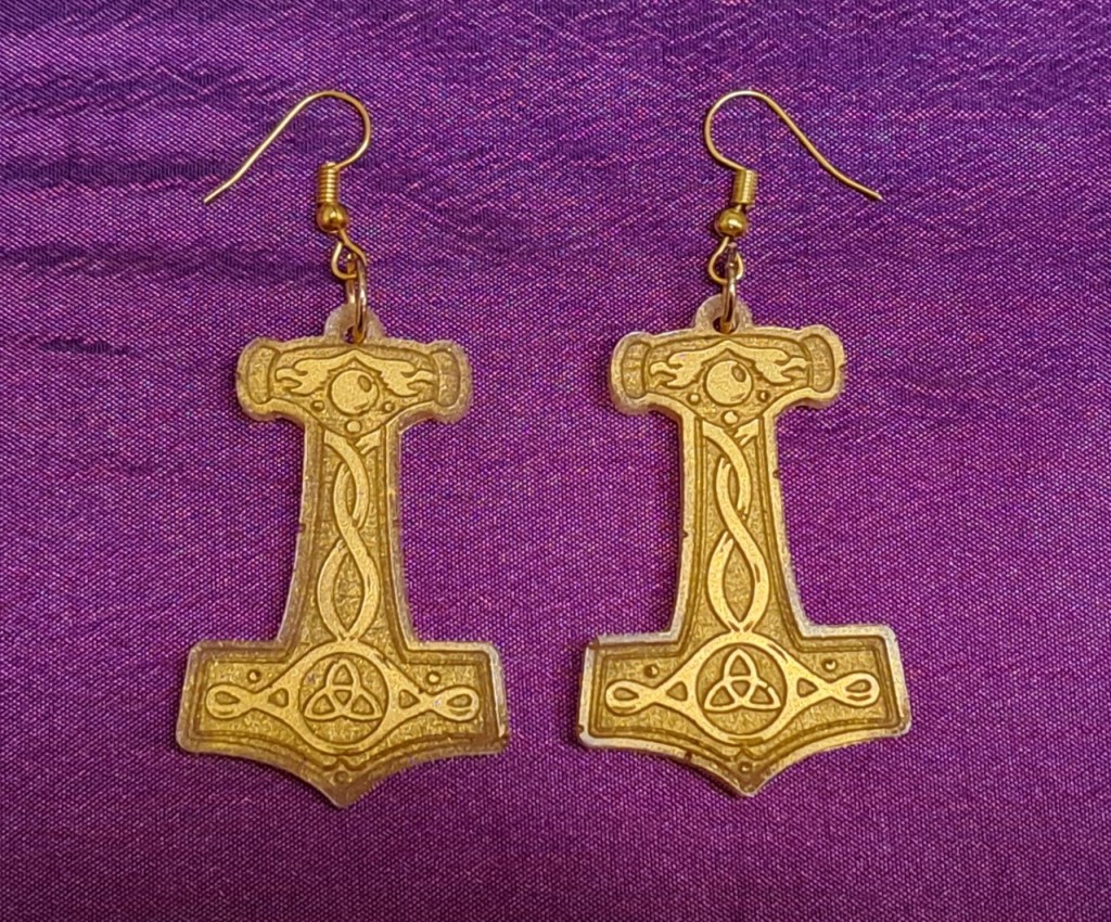 Boucles d’oreille en époxy doré, style celtique. marteau de Thor.
