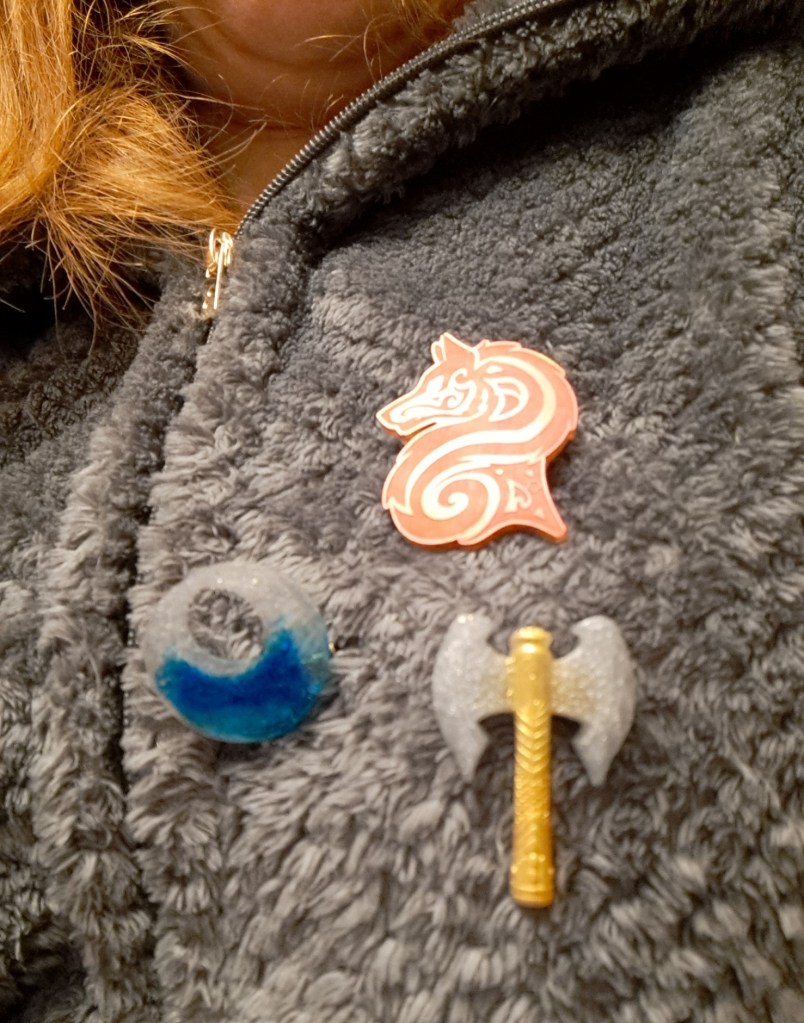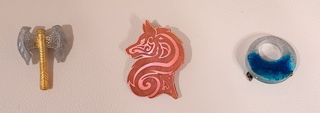 Broches en époxy et couleur poudrée. Style celtique et viking.