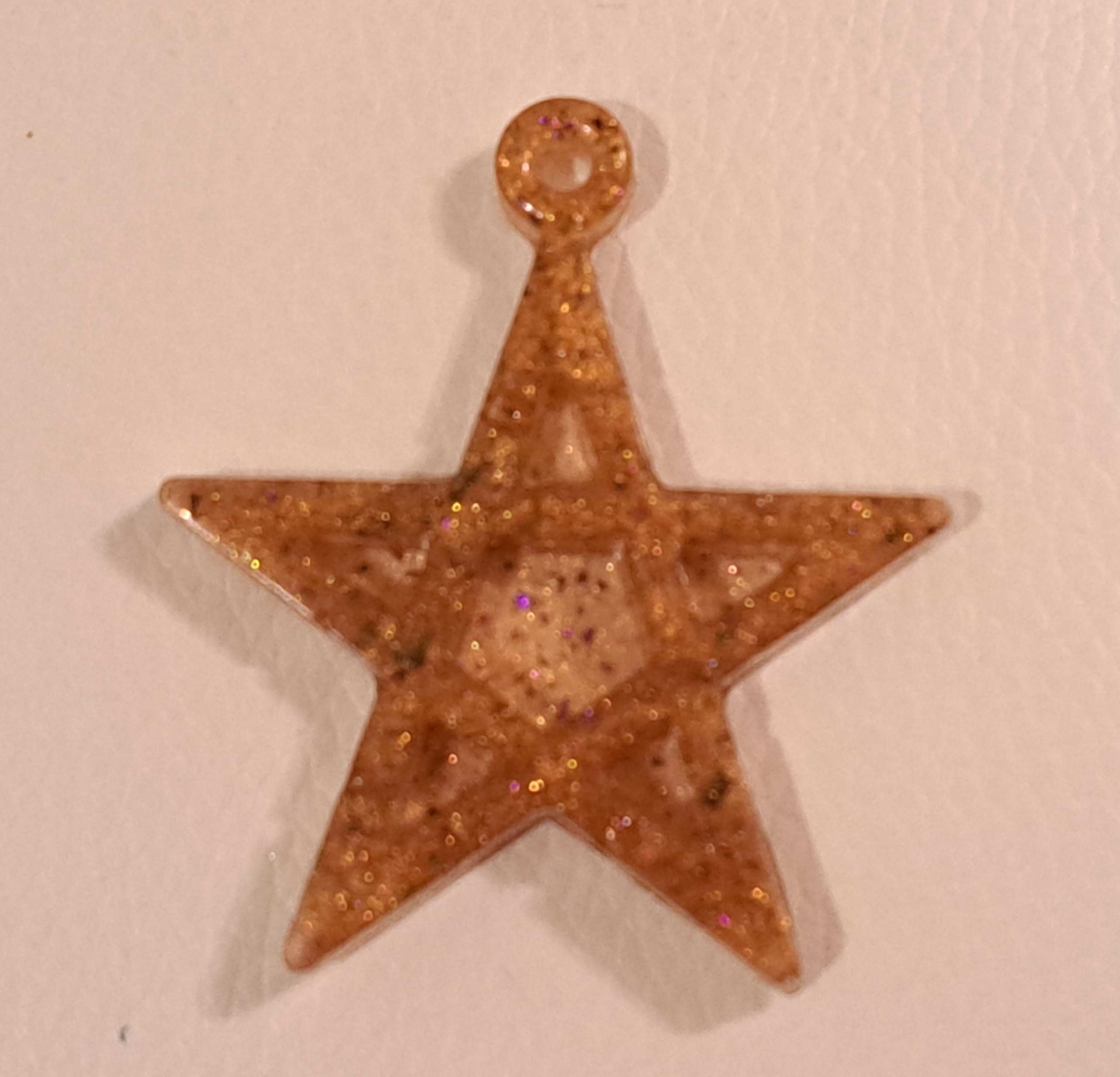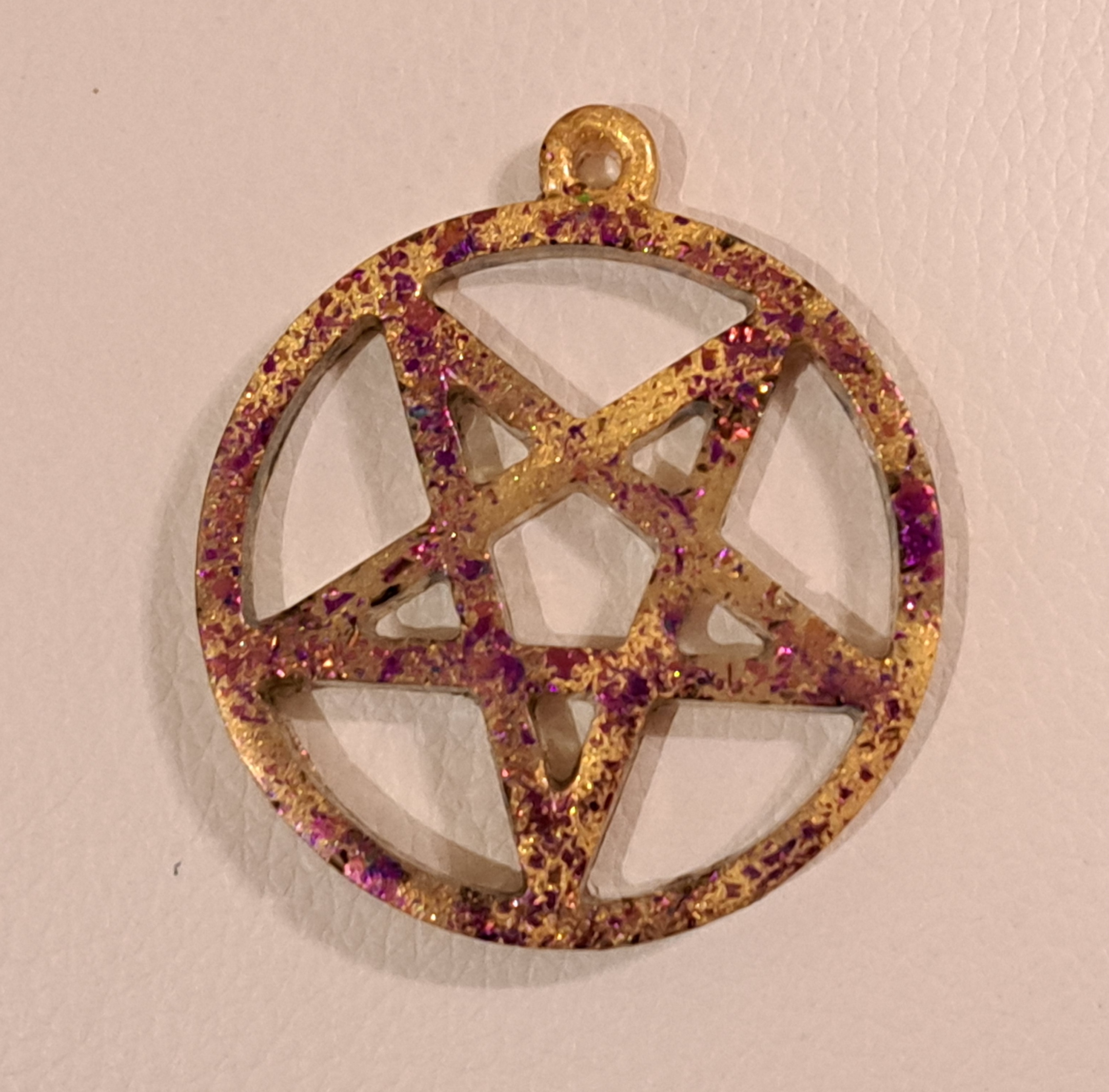 Pendentif en époxy et couleur dorée, avec paillettes, du style celtique et chamanique.